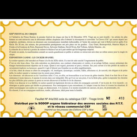 Feuillet CEF n° 44s/355 - Manifestations en Principauté
