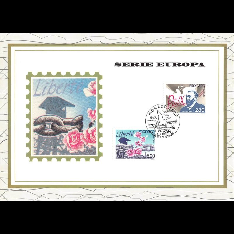 Feuillet CEF de Monaco, livré conforme au scan. Taille 155 x 215 mm. Imprimé sur Papier glacé. Le n° de document suivi d'un "s" signifie que l'illustration est une pièce de soie.
