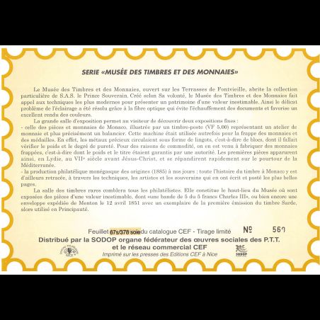Feuillet CEF n° 67s/378 - Musée des timbres et des monnaies