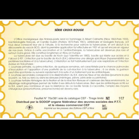 Feuillet CEF n° 70s/381 - Série croix-rouge
