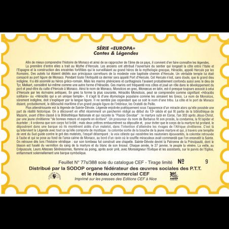 Feuillet CEF n° 77s/388 - Série Europa, Contes et Légendes
