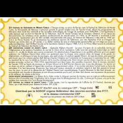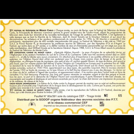 Feuillet CEF de Monaco, livré conforme au scan. Taille 155 x 215 mm. Imprimé sur Papier glacé. Le n° de document suivi d'un "s" signifie que l'illustration est une pièce de soie.