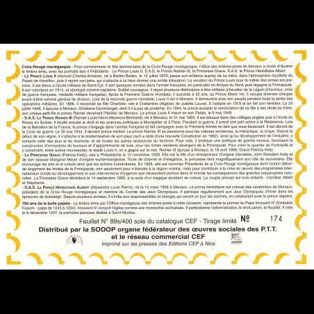 Feuillet CEF de Monaco, livré conforme au scan. Taille 155 x 215 mm. Imprimé sur Papier glacé. Le n° de document suivi d'un "s" signifie que l'illustration est une pièce de soie.
