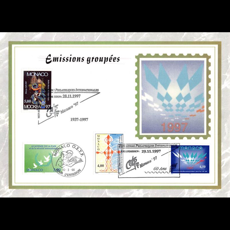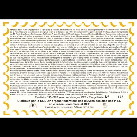 Feuillet CEF de Monaco, livré conforme au scan. Taille 155 x 215 mm. Imprimé sur Papier glacé. Le n° de document suivi d'un "s" signifie que l'illustration est une pièce de soie.