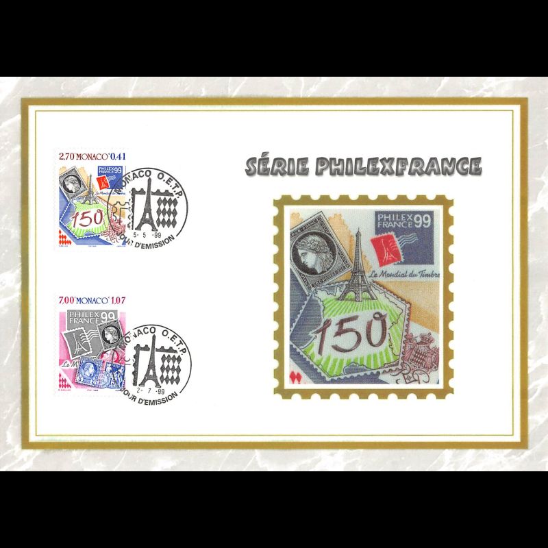 Feuillet CEF de Monaco, livré conforme au scan. Taille 155 x 215 mm. Imprimé sur Papier glacé. Le n° de document suivi d'un "s" signifie que l'illustration est une pièce de soie.