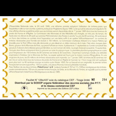 Feuillet CEF n° 126s/437 - Série Philexfrance
