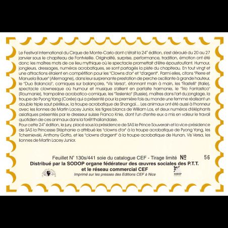 Feuillet CEF n° 130s/441 - XXIVème festival du cirque
