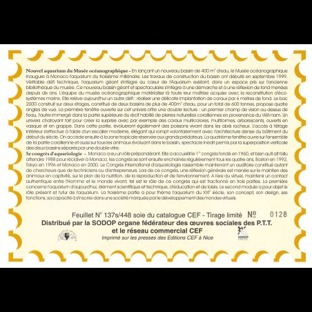 Feuillet CEF de Monaco, livré conforme au scan. Taille 155 x 215 mm. Imprimé sur Papier glacé. Le n° de document suivi d'un "s" signifie que l'illustration est une pièce de soie.