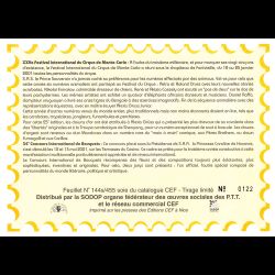 Feuillet CEF de Monaco, livré conforme au scan. Taille 155 x 215 mm. Imprimé sur Papier glacé. Le n° de document suivi d'un "s" signifie que l'illustration est une pièce de soie.