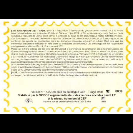 Feuillet CEF de Monaco, livré conforme au scan. Taille 155 x 215 mm. Imprimé sur Papier glacé. Le n° de document suivi d'un "s" signifie que l'illustration est une pièce de soie.