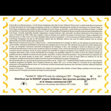 Feuillet CEF de Monaco, livré conforme au scan. Taille 155 x 215 mm. Imprimé sur Papier glacé. Le n° de document suivi d'un "s" signifie que l'illustration est une pièce de soie.