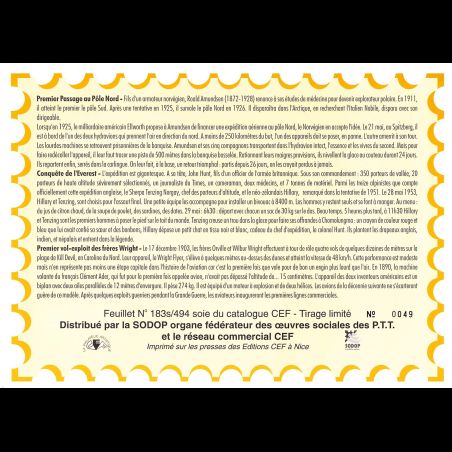 Feuillet CEF n° 183s/494 - Série aventures