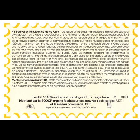 Feuillet CEF de Monaco, livré conforme au scan. Taille 155 x 215 mm. Imprimé sur Papier glacé. Le n° de document suivi d'un "s" signifie que l'illustration est une pièce de soie.