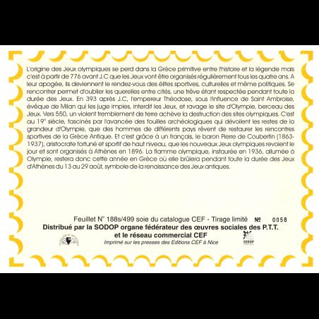 Feuillet CEF n° 188s/499 - Série Jeux Olympiques