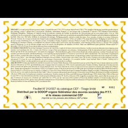 Feuillet CEF de Monaco, livré conforme au scan. Taille 155 x 215 mm. Imprimé sur Papier glacé. Le n° de document suivi d'un "s" signifie que l'illustration est une pièce de soie.