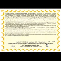 Feuillet CEF de Monaco, livré conforme au scan. Taille 155 x 215 mm. Imprimé sur Papier glacé. Le n° de document suivi d'un "s" signifie que l'illustration est une pièce de soie.
