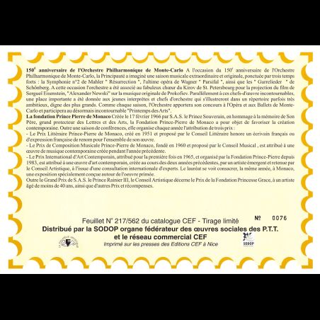 Feuillet CEF n° 217/562 - Série anniversaires Monégasques 2006