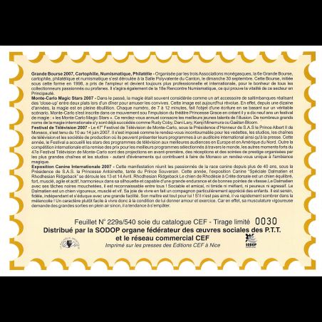 Feuillet CEF n° 229s/540 - Série Manifestations 2007