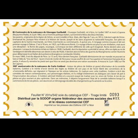 Feuillet CEF n° 231s/542 - Série Italie 2007