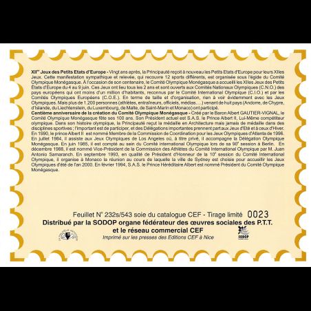 Feuillet CEF de Monaco, livré conforme au scan. Taille 155 x 215 mm. Imprimé sur Papier glacé. Le n° de document suivi d'un "s" signifie que l'illustration est une pièce de soie.
