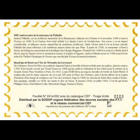 Feuillet CEF n° 241s/552 - Série Sculpture et Architecture 2008