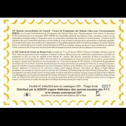 Feuillet CEF de Monaco, livré conforme au scan. Taille 155 x 215 mm. Imprimé sur Papier glacé. Le n° de document suivi d'un "s" signifie que l'illustration est une pièce de soie.