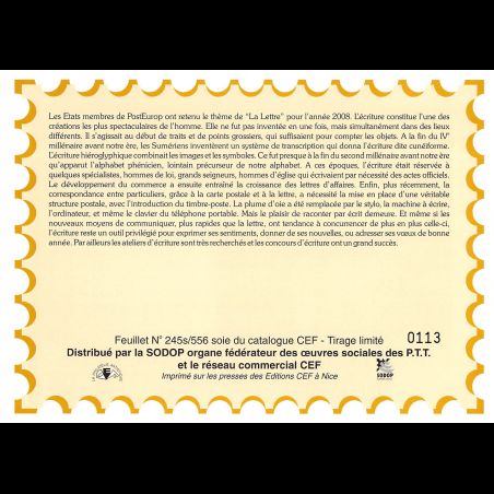 Feuillet CEF n° 245s/556 - Série Europa 2008