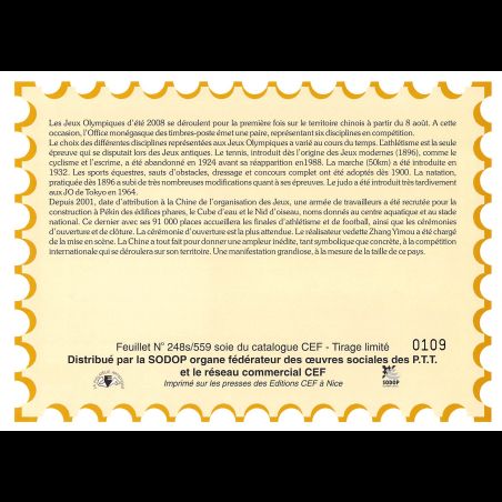Feuillet CEF n° 248s/559 - Série Jeux Olympiques 2008