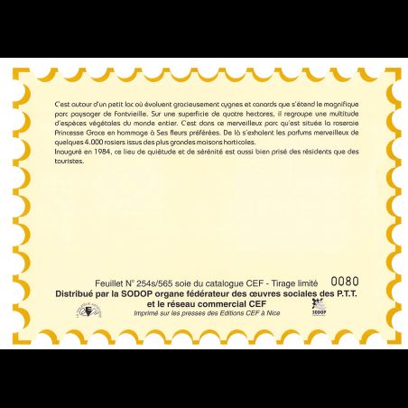 Feuillet CEF de Monaco, livré conforme au scan. Taille 155 x 215 mm. Imprimé sur Papier glacé. Le n° de document suivi d'un "s" signifie que l'illustration est une pièce de soie.