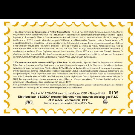 Feuillet CEF n° 255s/566 - Série Littérature 2009