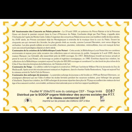 Feuillet CEF n° 259s/570 - Série Anniversaire 2009