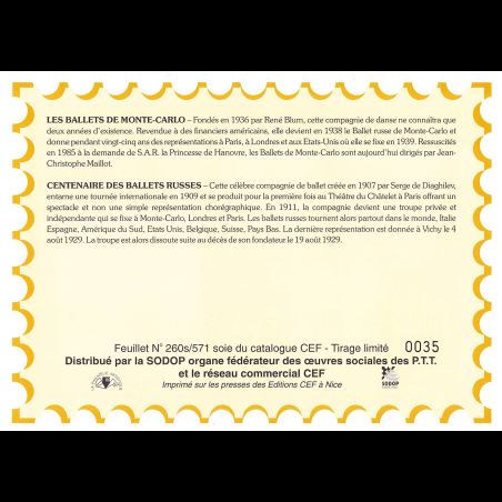 Feuillet CEF n° 260s/571 - Série Ballets 2009