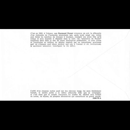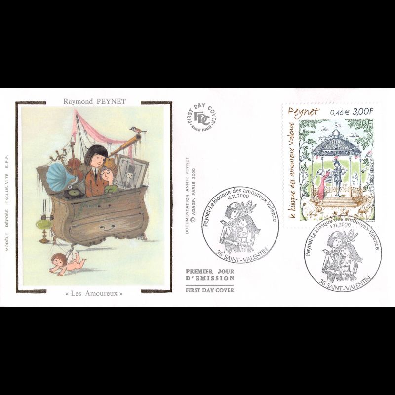 FDC soie - Tableau Raymond PEYNET - Les amoureux - 4/11/2000 St Valentin