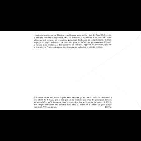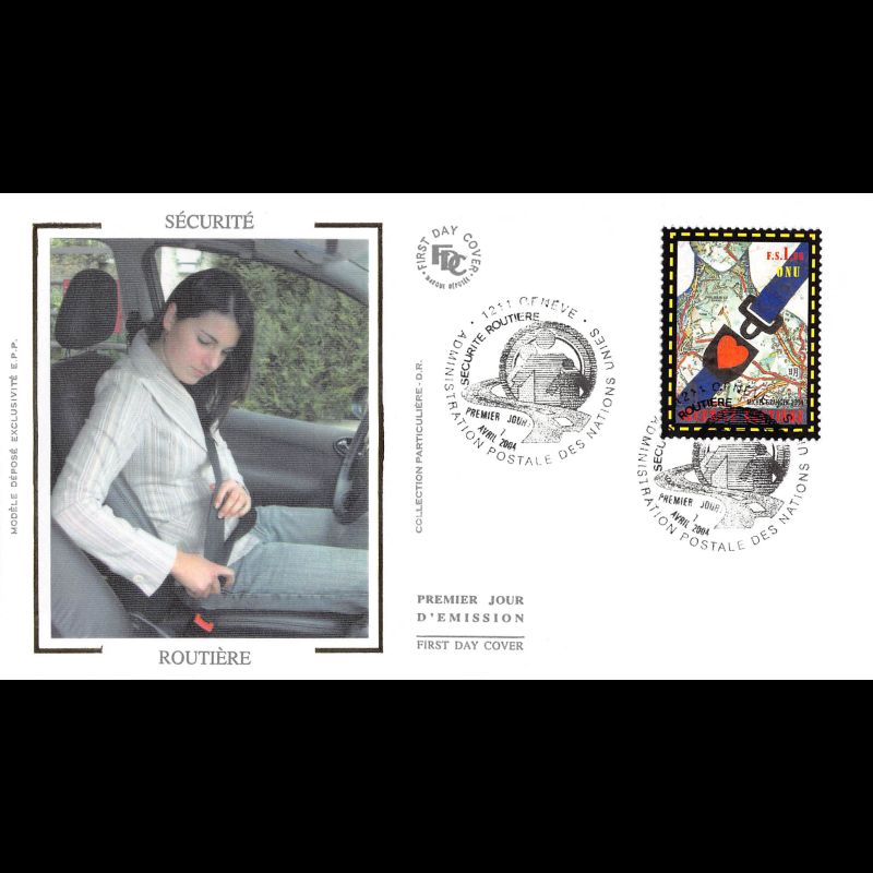 FDC soie - Sécurité routière - 7/4/2004 ONU Genève - First Day Cover - Enveloppe premier jour de France avec illustration soie. Edition Jean Farcigny Dimensions de l'enveloppe : 150 x 90 mm