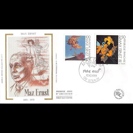 FDC soie - Tableau Max Ernst - Env mixte - oblit 10/10/1991 Sceaux