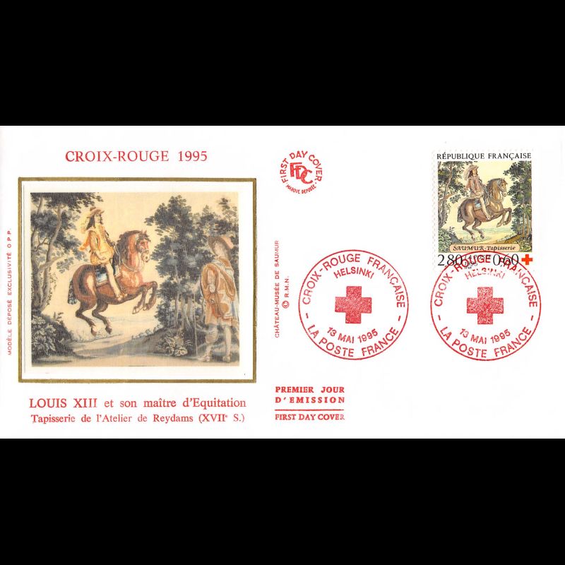 FDC soie - Carnet croix rouge 95 - oblit PJ 13/5/1995 Helsinki - First Day Cover - Enveloppe premier jour Grand Format de France, illustration soie. Emission 1995 Edition Jean Farcigny Dimensions de l'enveloppe : 248 x 177 mm