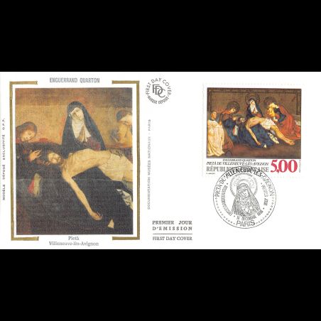 FDC soie - Tableau Enguerrand Quarton - La Pieta - oblit 10/12/1988 Paris