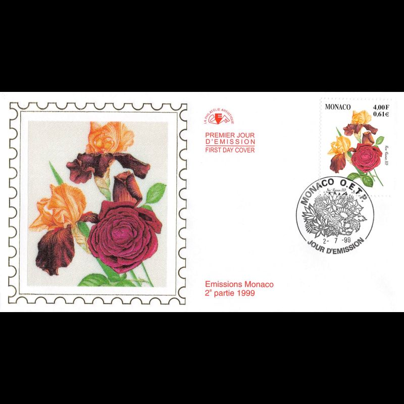 CEF soie - Rose et Iris Rainier III, oblit 2/7/99