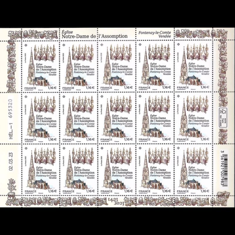 Feuille de 15 timbres neuf ** de France avec marge illustrée (5671)