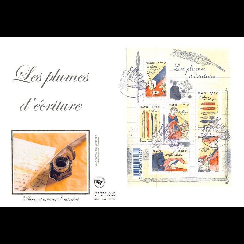 FDC GF soie - Bloc les plumes d'écriture, oblit 4/11/2016 Paris