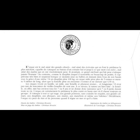 FDC LNF - Faune marine - L'orque - 5/5/2002 Paris