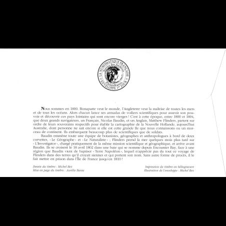 FDC LNF - Emission France Australie, Nicolas Baudin - 4/4/2002 St Martin de Ré