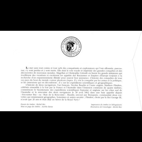 FDC LNF - Emission France Australie, Matthew Flinders - 4/4/2002 Paris