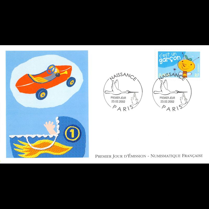 FDC LNF - Timbres de naissance, garçon - 23/2/2002 Paris