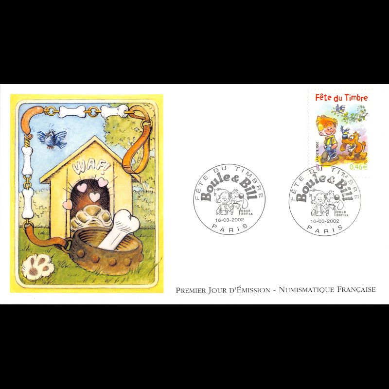 FDC LNF - Fête du timbre. Boule et Bill (3467) - 16/03/2002 Paris