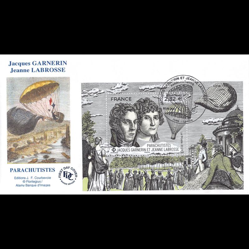 FDC JF - Bloc premiers parachutistes Garnerin et Labrosse - 7/4/2023