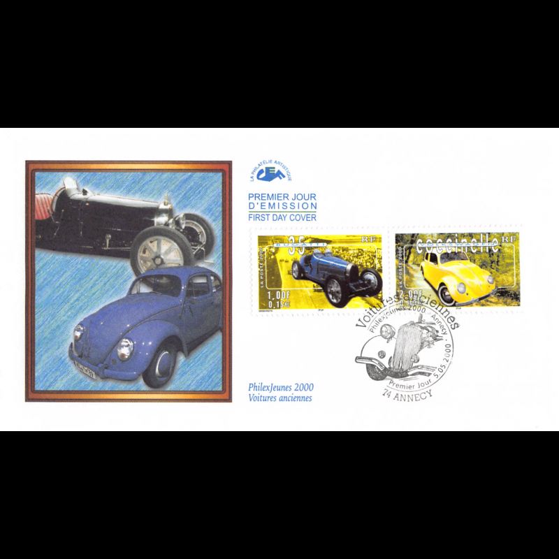 CEF - Voitures anciennes. Bugatti 35 et Volkwagen Coccinelle - 5/5/2000 Annecy - First Day Cover - Enveloppe premier jour de France.