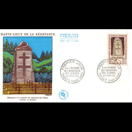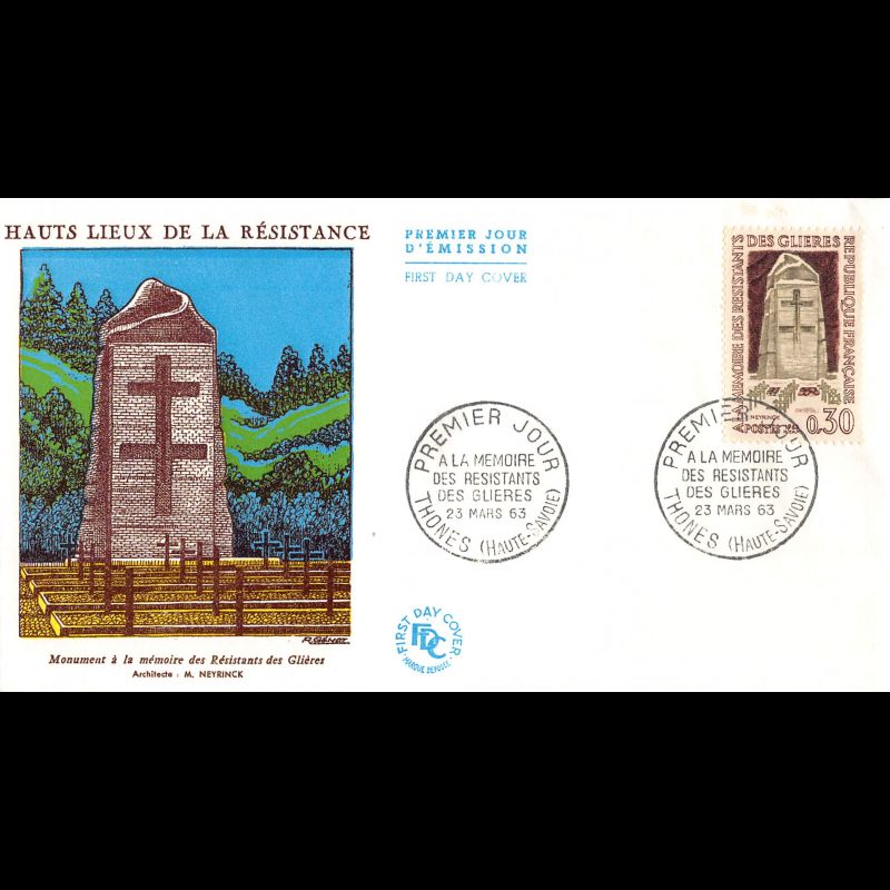 FDC JF - Monument de la résistance des glières - oblit Thones 23/3/63