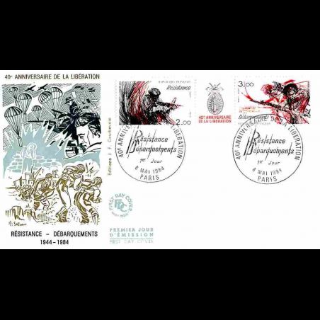 FDC JF - 40e anniv Libération - Résistance, débarquement - 8/5/1984 Paris - First Day Cover - Enveloppe premier jour de France.