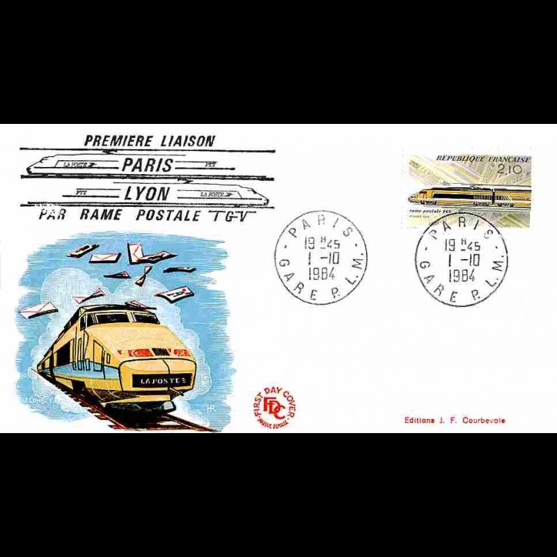 FDC JF - 1ère liaison Paris Lyon par rame postale TGV - 1/10/1984